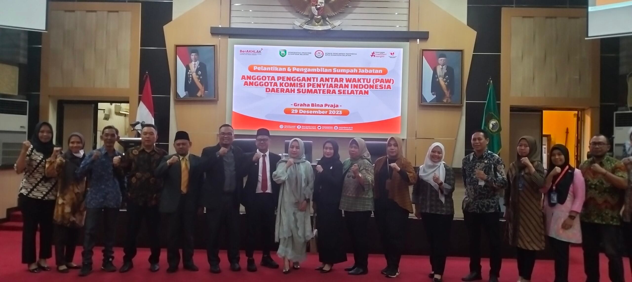 Pemerintah provinsi (Pemprov) Sumatera Selatan (Sumsel) dalam hal ini Penjabat Gubernur Sumsel Dr Drs H A Fathoni, M.Si diwakili oleh Sekretaris Daerah (Sekda) Provinsi Sumsel Ir SA Supriono menghadiri acara pelantikan Anggota Komisi Penyiaran Indonesia Daerah (KPID) Provinsi Sumsel Pergantian Antar Waktu (PAW) Periode 2022-2025 atas nama Abdullah Arafah, S.E di Graha Bina Praja kantor Gubernur Sumsel, Jumat (29/12/2023).