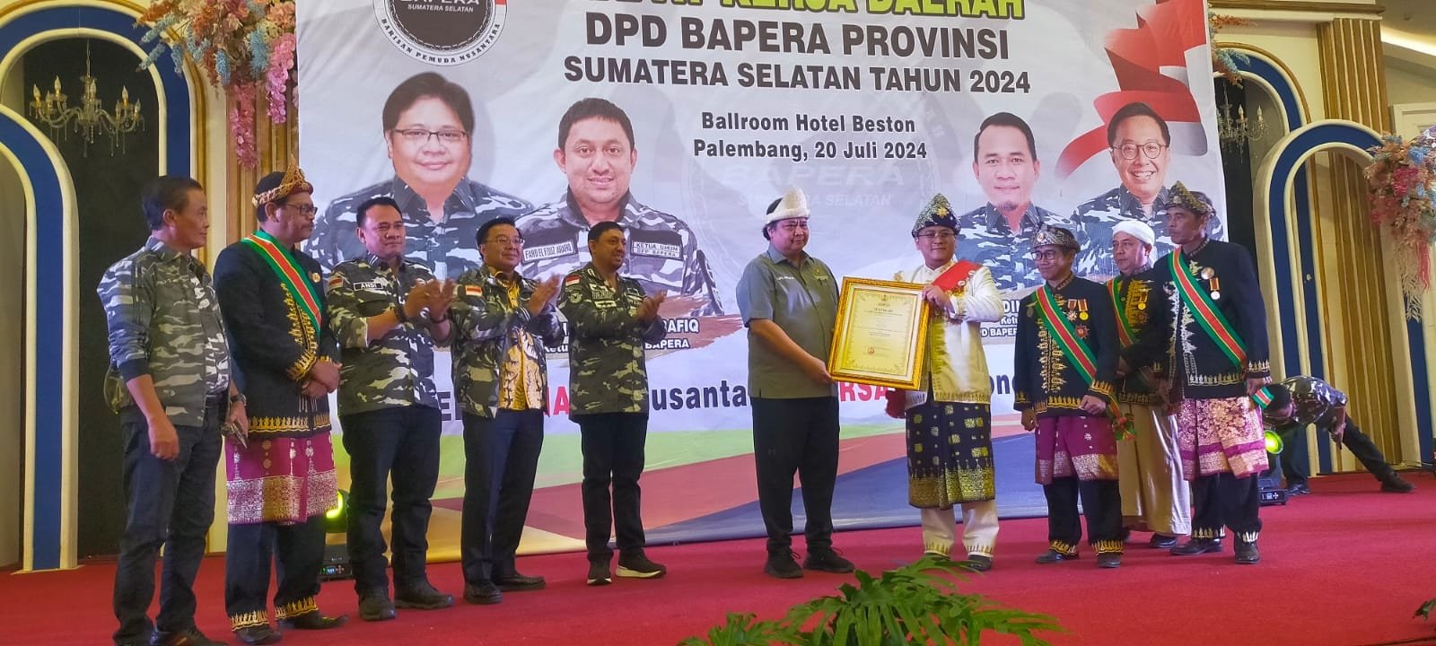 Airlangga Hartarto Selaku Ketua dewan dari DPP Bapera mengatakan, dia bangga dapat hadir dalam Rakerda Bapera Sumsel.