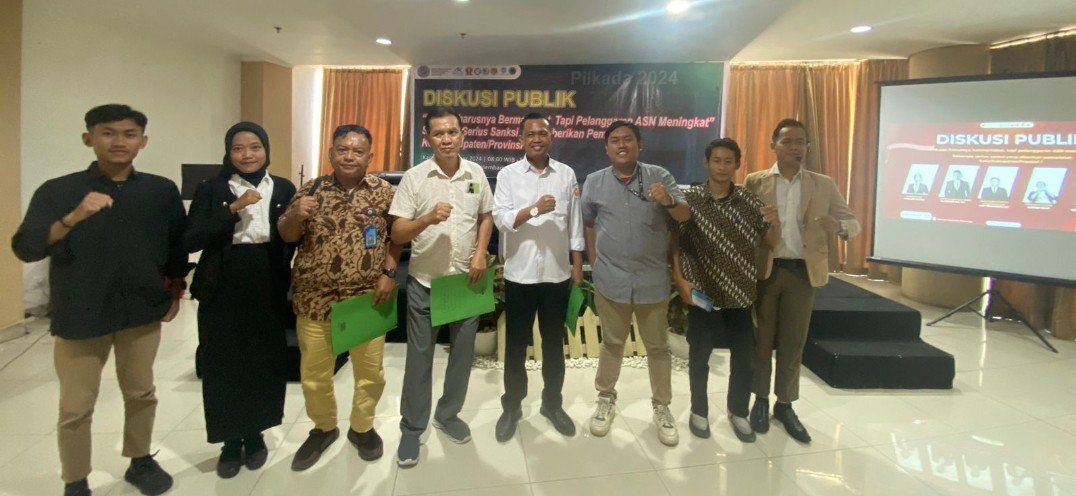 Aliansi Mahasiswa dan Pemuda Peduli Demokrasi Sumsel mengelar diskusi publik dengan tema Pilkada harus bermartabat, tapi pelanggaran ASN meningkat seberapa serius sanksi yang diberikan Pemerintah Kota/Kabupaten/Provinsi, di Ballroom Hotel Azza Kota Palembang, Rabu (17/10/2024).