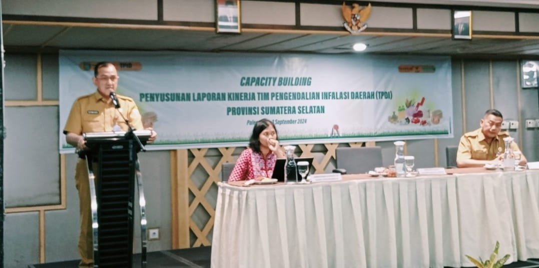 Pemerintah Provinsi (Pemprov) Sumatera Selatan (Sumsel) dalam hal ini Sekretaris Daerah (Sekda) Provinsi Sumsel Drs H Edward Candra, MH menghadiri serta membuka secara resmi kegiatan capacity building penyusunan pelaporan kinerja Tim Pengendalian Inflasi Daerah (TPID) provinsi Sumsel Tahun 2024 yang dilaksanakan oleh Biro Perekonomian Sekretariat Daerah (Setda) Provinsi Sumsel bertempat di ballroom Emilia Hotel Palembang, Selasa (3/9/2024).