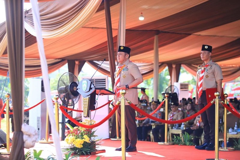 Gubernur Sumatera Selatan (Sumsel), H. Herman Deru, menegaskan bahwa Gerakan Pramuka harus menjadi garda terdepan dalam menjaga keutuhan Negara Kesatuan Republik Indonesia (NKRI). Hal ini disampaikannya saat menjadi Inspektur Upacara pada Apel Peringatan Hari Ulang Tahun (HUT) Gerakan Pramuka ke-64 tingkat daerah di Bumi Perkemahan Gandus, Palembang, Kamis (28/8/2025).