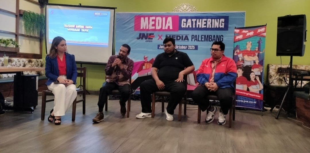 Untuk ketiga kalinya, PT Jalur Nugraha Ekakurir (JNE) Cabang Sumatera Selatan kembali menggelar Media Gathering sebagai bentuk apresiasi dan silaturahmi bersama insan pers, di cafe & resto gardenta Palembang, Jumat (10/10/2025).