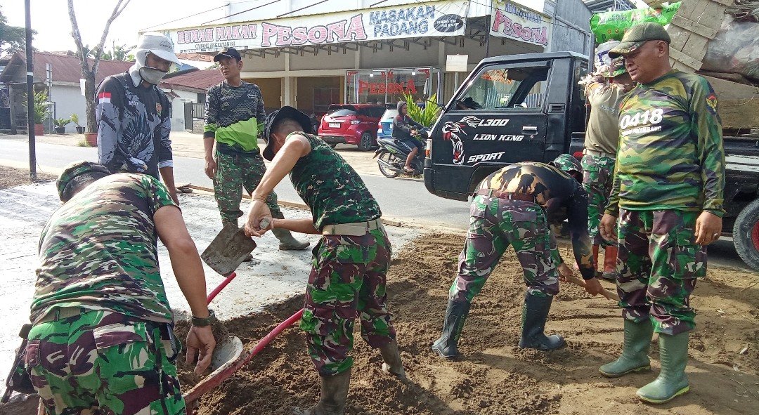 Personel Babinsa Kodim 0418/Palembang melaksanakan kegiatan kerja bakti (kurve) di Gedung KDKMP Srimulya, sebagai bagian dari percepatan persiapan fasilitas Kodim, Minggu (04/01/2026).