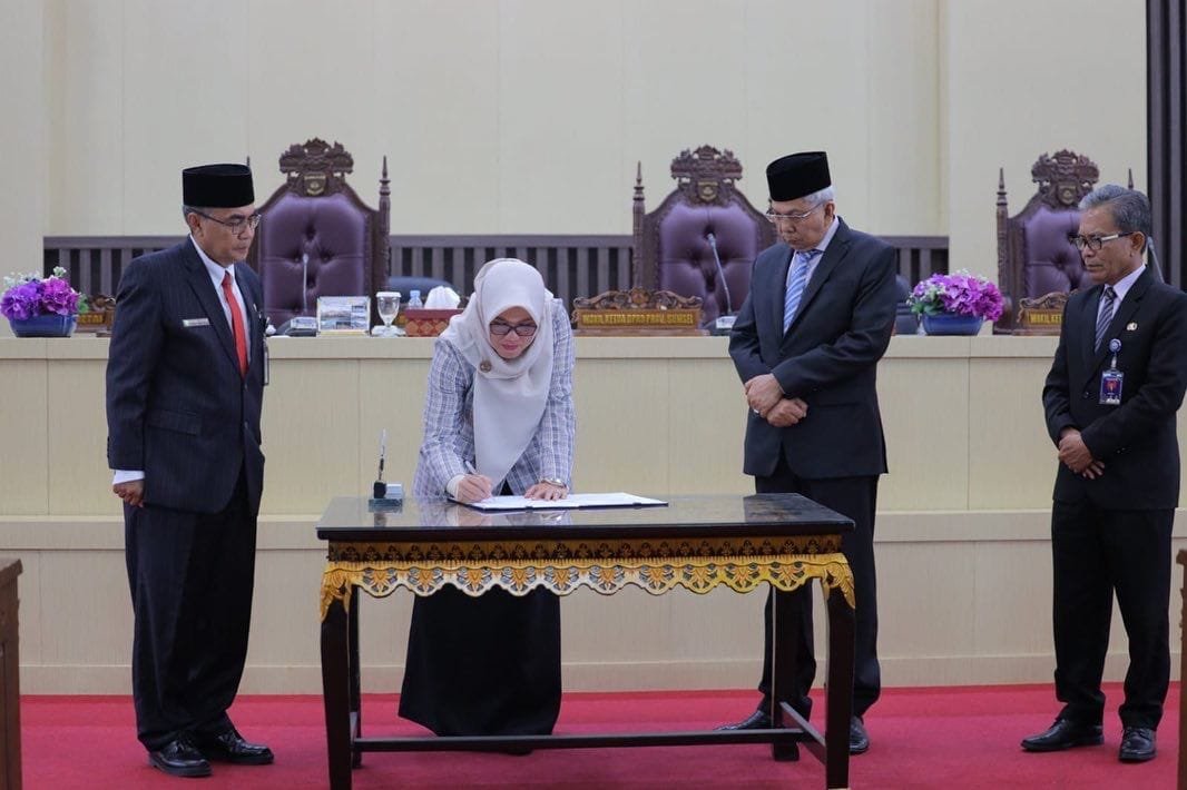 Usai mendengarkan laporan hasil reses ditandatangani oleh Wakil Ketua DPRD Sumsel, Kartika Sandra Desi disaksikan Wagub Mawardi Yahya.