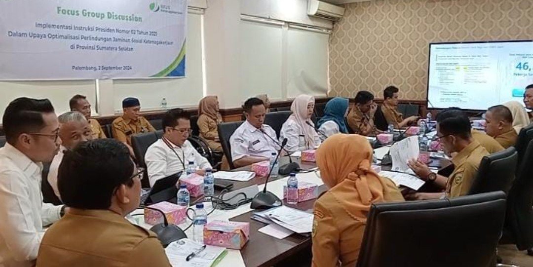 Pemerintah Provinsi (Pemprov) Sumatera Selatan (Sumsel) dalam hal ini Penjabat Gubernur Sumsel Elen Setiadi, SH., MSE yang diwakili oleh Staf Ahli Gubernur Sumsel bidang Pemerintahan, Politik dan Hukum Sekretariat Daerah (Setda) Provinsi Sumsel Panji Tjahjanto, S.Hut., MSi menghadiri kegiatan Focus Grouo Discussion (FGD) tentang Implementasi program jaminan sosial ketenagakerjaan yang diselenggarakan oleh Badan Penyelenggara Jaminan Sosial Ketenagakerjaan Sumatera Bagian Selatan (Sumbagsel) bertempat di ruang rapat Sekretaris Daerah Kantor Gubernur Provinsi Sumsel, Senin (2/9/2024).