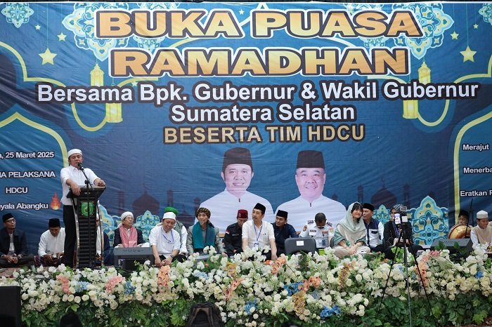 Guna mengeratkan silaturahmi dan kekompakan Gubernur Sumatera Selatan (Sumsel) H Herman Deru didampingi anggota DPD MPR RI, Ratu Teny Leriva bersilaturahmi dengan Tim HDCU yang dikemas dalam Buka Puasa Bersama (Bukber) bertempat di Gedung Wanita Rajawali Palembang, Selasa (25/3/2025).