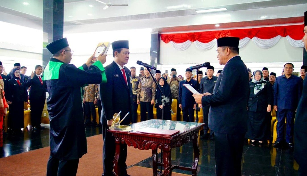 Pelantikan dan pengambilan sumpah Pejabat ini dilakukan di Pendopoan Griya Bumi Serasan Sekate, Kamis (12/3/2026).