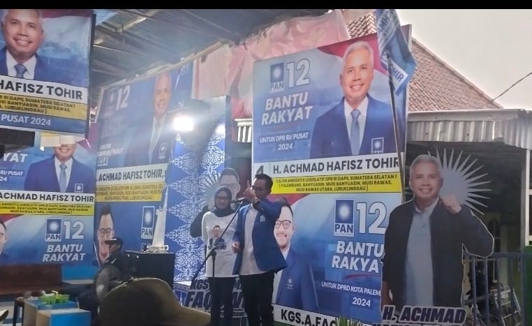 Caleg DPRD Kota Palembang Dapil 1 (Ilir Barat 1, Ilir Barat II, Bukit Kecil, Gandus) KGS.A.Faqowini melakukan acara konsolidasi pemenangan pemilu bersama Caleg DPR RI H.Achamd Hafisz Tohir bertempat di Posko Pemenangan 29 di Jalan Sungai Tawar 3 Nomor 477 RT 13 Kelurahan 29 Ilir, Jumat (12/1/2024).