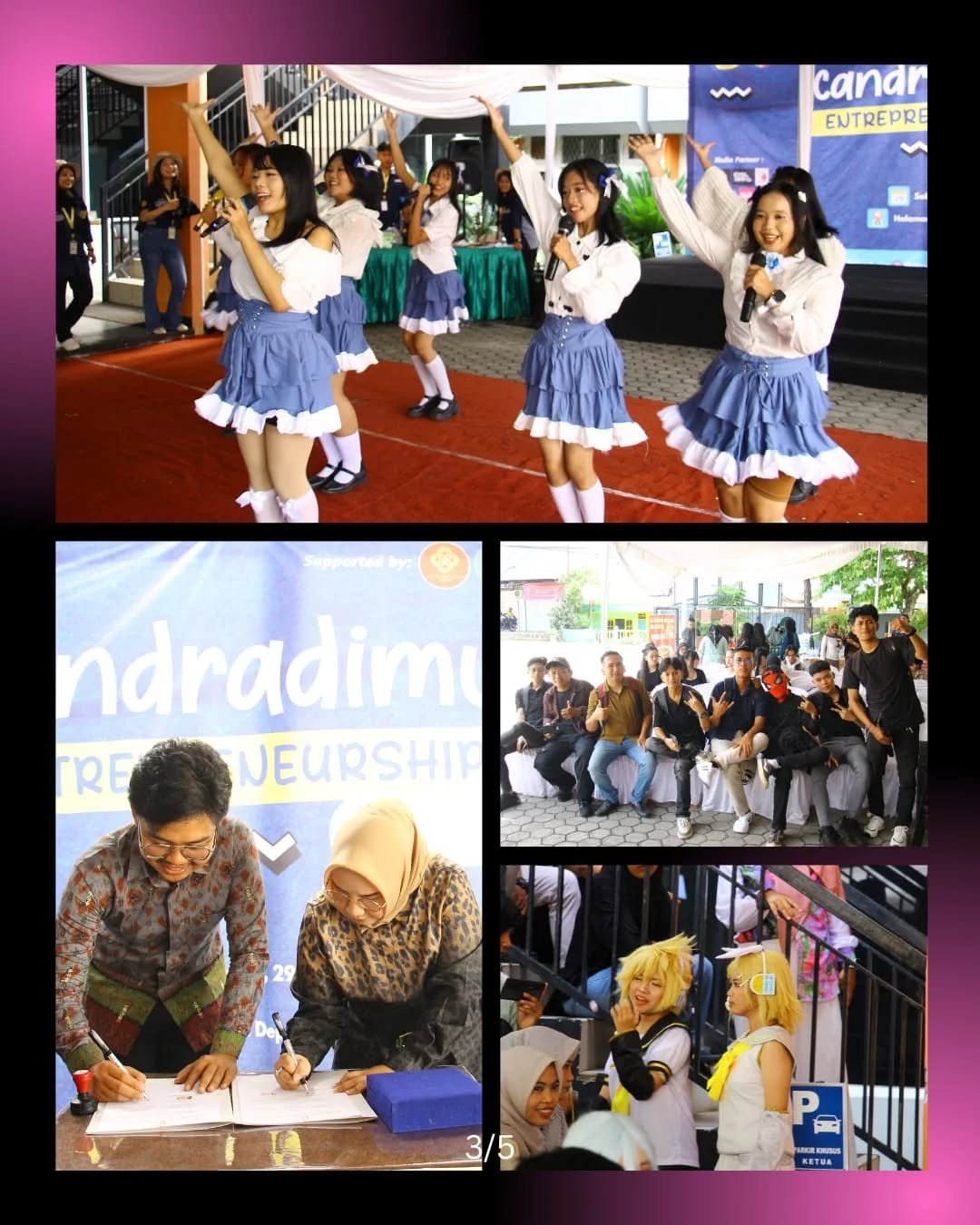 Tidak hanya berfokus pada bisnis, Candradimuka Entrepreneurship Day 2025 juga menghadirkan unsur hiburan dan kreativitas melalui Coswalk Competition, salah satu kegiatan yang paling ramai menarik perhatian pengunjung. Kompetisi yang digelar pada 29 November 2025 ini menggabungkan unsur seni kostum, budaya pop, serta performa panggung yang menampilkan berbagai karakter dari anime, manga, game, hingga film populer.