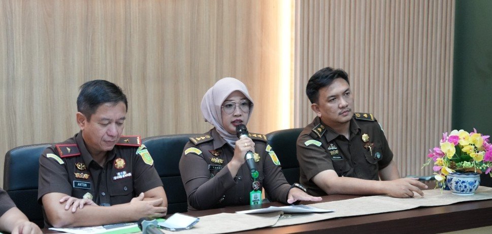 Wakil Kepala Kejaksaan Tinggi Sumatera Selatan Anton Delianto, S.H., M.H. di dampingi Asisten Intelijen sekaligus Plt. Asisten Tindak Pidana Khusus Kejati Sumsel, Kasi Penkum serta para Kasi Bidang Pidsus Kejati Sumsel menyampaikan Pers Rilis terkait Capaian Kinerja Bidang Tindak Pidana Khusus Kejaksaan Tinggi Sumatera Selatan Periode Januari – Desember 2025 dalam rangka memperingati Hari Anti Korupsi Sedunia (Hakordia) Tahun 2025.