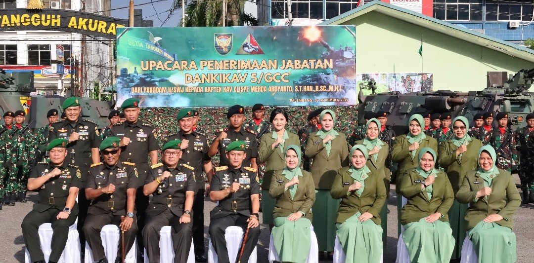Dandim 0418/Palembang Letkol Arh Erik Novianto, S.Sos menghadiri Upacara Penerimaan Jabatan Komandan Kikav 5/Gatot Cakra Cakti (GCC) yang berlangsung di Lapangan Upacara Kikav 5/GCC, Jalan MP. Mangkunegara, Kelurahan 8 Ilir, Kecamatan Ilir Timur II Kota Palembang, Rabu (26/11/2025).