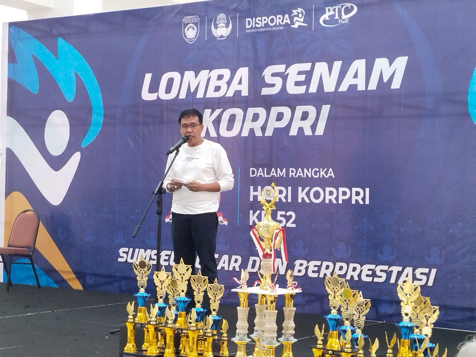 Pemerintah provinsi (Pemprov) Sumatera Selatan (Sumsel) dalam hal ini Penjabat Gubernur Sumsel Dr Drs H A Fathoni, M.Si yang diwakili oleh Staf Ahli Gubernur Sumsel bidang Kemasyarakatan dan Sumber Daya Manusia (SDM) Setda Provinsi Sumsel Drs Nelson Firdaus, M.M menghadiri serta membuka secara langsung kegiatan lomba senam Korpri Tahun 2023.
