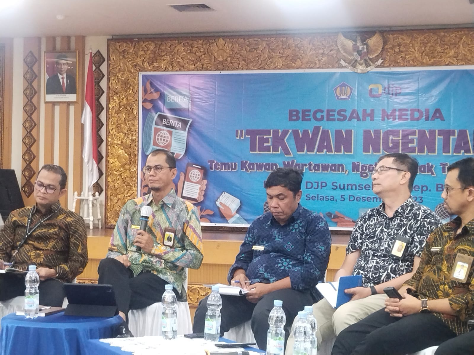 Dalam rangka meningkatkan silaturahmi antara para wartawan dengan Direktorat Jenderal Pajak (DJP) khususnya Kantor Wilayah (Kanwil) DJP Sumatera Selatan (Sumsel) dan Kepulauan Bangka Belitung (Babel) maka hari ini melaksanakan acara begesah media “Tekwan Ngentak (Temu Kawan Wartawan Ngobrol Enak Tentang Pajak)” yang dilaksanakan bertempat di Ruangan Aula lantai 5 Kanwil DJP Sumsel dan Kepulauan Babel dalam agenda dialog bersama Kepala Kanwil DJP Sumsel dan Kepulauan Babel.