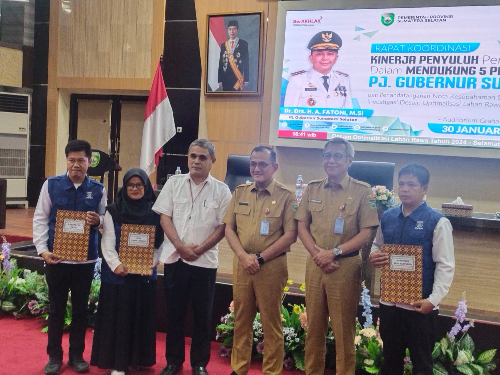 Selain itu juga dilaksanakan penandatanganan nota kesepahaman survei investigasi desain optimalisasi lahan rawa tahun 2024 dengan Universitas Sriwijaya yang dilaksanakan oleh Dinas Pertanian, Tanaman Pangan, dan Holtikultura (TPH) Provinsi Sumsel bertempat di auditorium Graha Bina Praja Kantor Gubernur Sumsel, Selasa (30/1/2024).