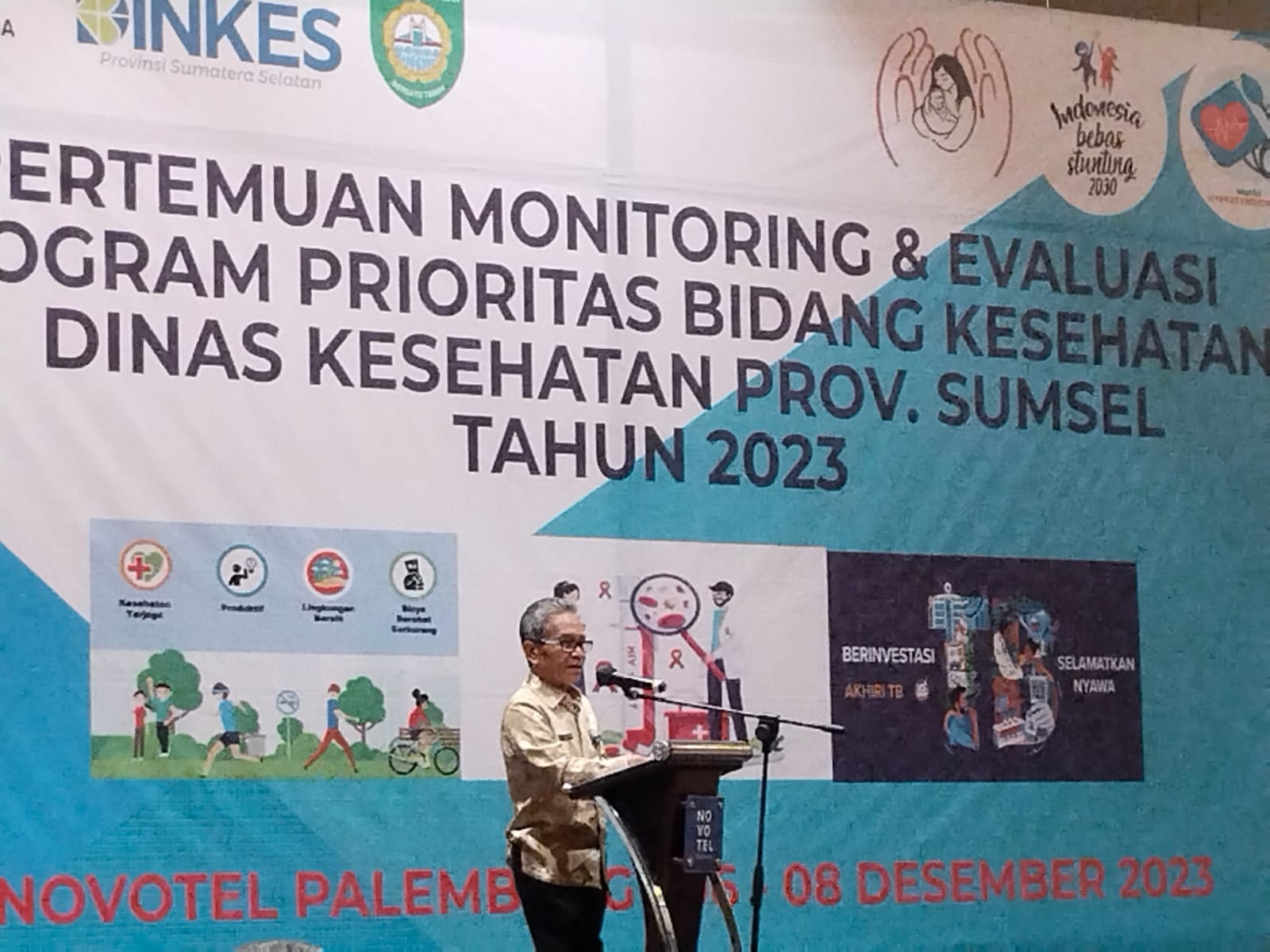 Sekretaris Daerah (Sekda) Provinsi Sumatera Selatan (Sumsel) Ir SA Supriono yang mewakili daripada Pemerintah provinsi Sumsel membuka secara resmi kegiatan Pertemuan monev program prioritas, evaluasi program prioritas dan penganugerahan kompetisi inovasi pelayanan publik (KIPP) bidang Kesehatan Dinas Kesehatan Provinsi Sumsel yang dilaksanakan oleh Dinkes Provinsi Sumsel yang dipusatkan di ballroom Hotel Novotel Palembang, Kamis (7/12/2023).
