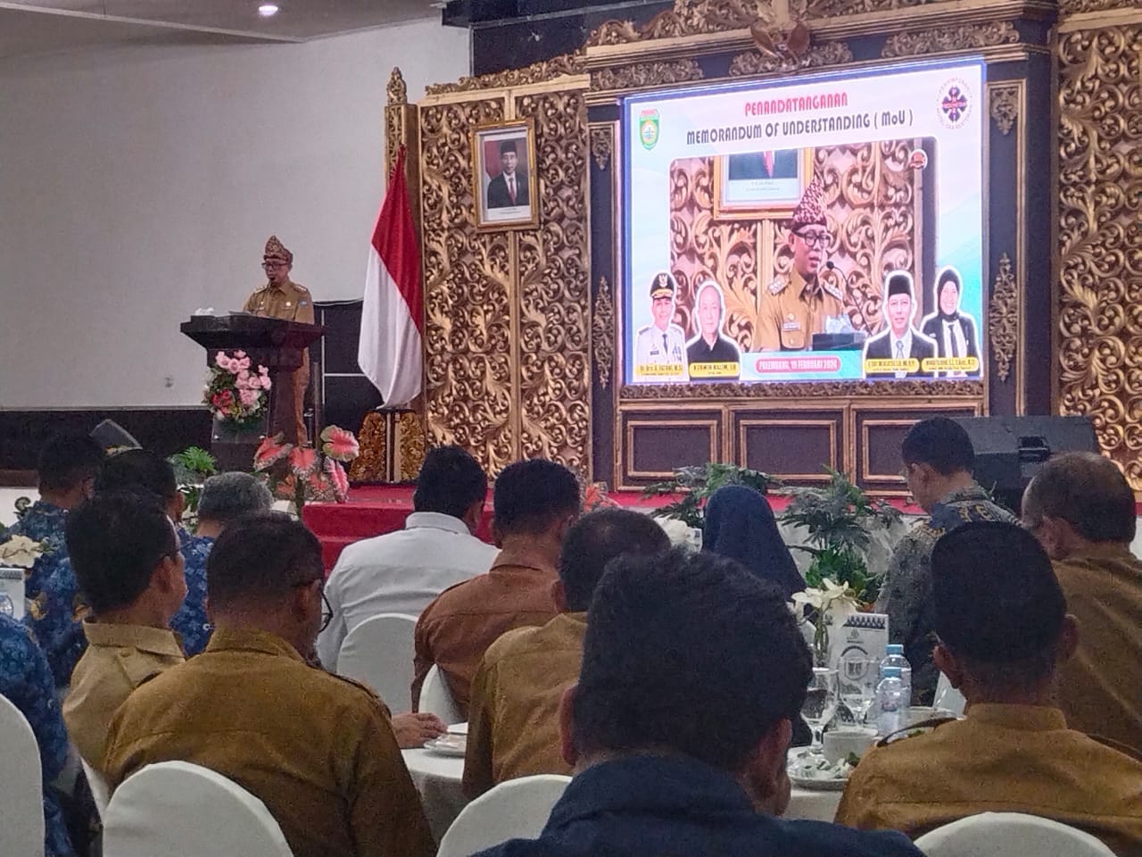 Pemerintah provinsi (Pemprov) Sumatera Selatan dalam hal ini Penjabat Gubernur Sumsel Dr Drs H A Fathoni, M.Si yang diwakili oleh Kepala Pelaksana Tugas (PLT) Dinas Pendidikan (Disdik) Provinsi Sumsel H Teddy Meilwansyah, S.STP., M.M., M.Pd menghadiri serta melakukan penandatanganan Memorandum of Understanding (MoU) antara Disdik Provinsi Sumsel dengan Persatuan Hotel dan Restoran Indonesia (PHRI) Provinsi Sumsel bertempat di Grand Ballroom Hotel Swarna Dwipa Palembang, Senin (19/2/2024).
