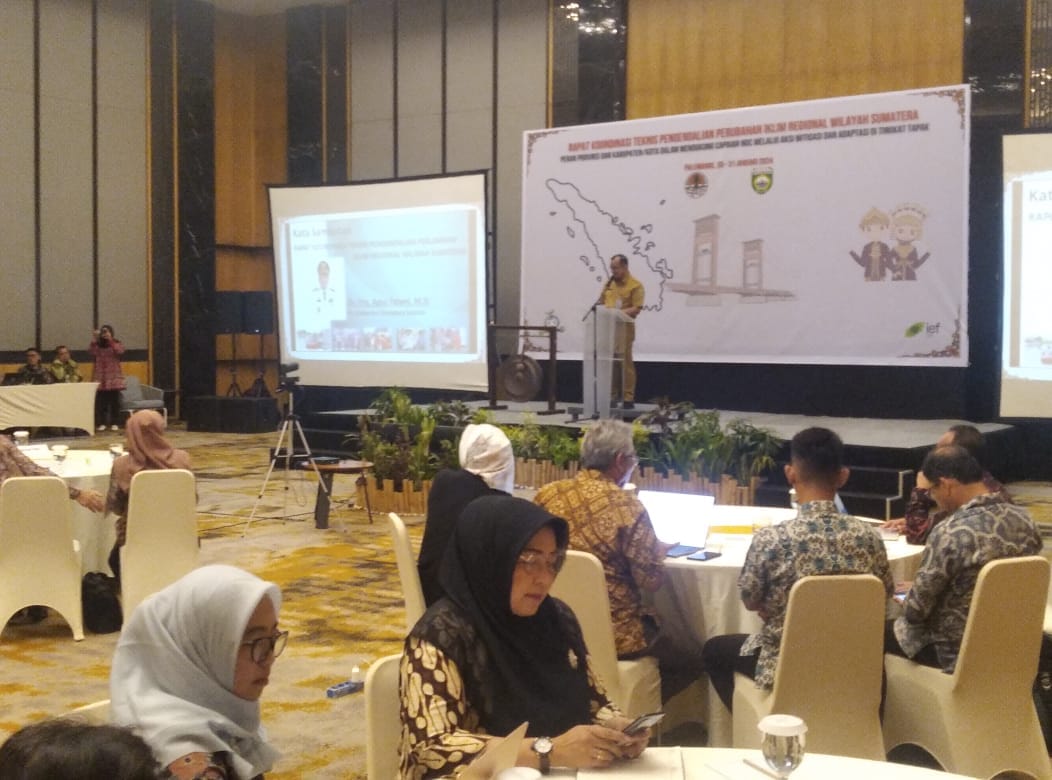 Pemerintah provinsi (Pemprov) Sumatera Selatan (Sumsel) dalam hal ini Penjabat Gubernur Sumsel Dr Drs H A Fathoni, M.Si yang diwakili oleh Asisten I Bidang Pemerintahan dan Kesejahteraan Rakyat (Kesra) Sekretariat Daerah (SETDA) Provinsi Sumsel Drs H Edward Candra, M.H menghadiri serta membuka secara resmi dengan pemukulan gong kegiatan rapat koordinasi teknis pengendalian perubahan iklim regional wilayah Sumatera. Adapun kegiatan ini sendiri dipusatkan di Grandballroom Hotel Santika Premiere Bandara Palembang, Selasa (30/1/2024).