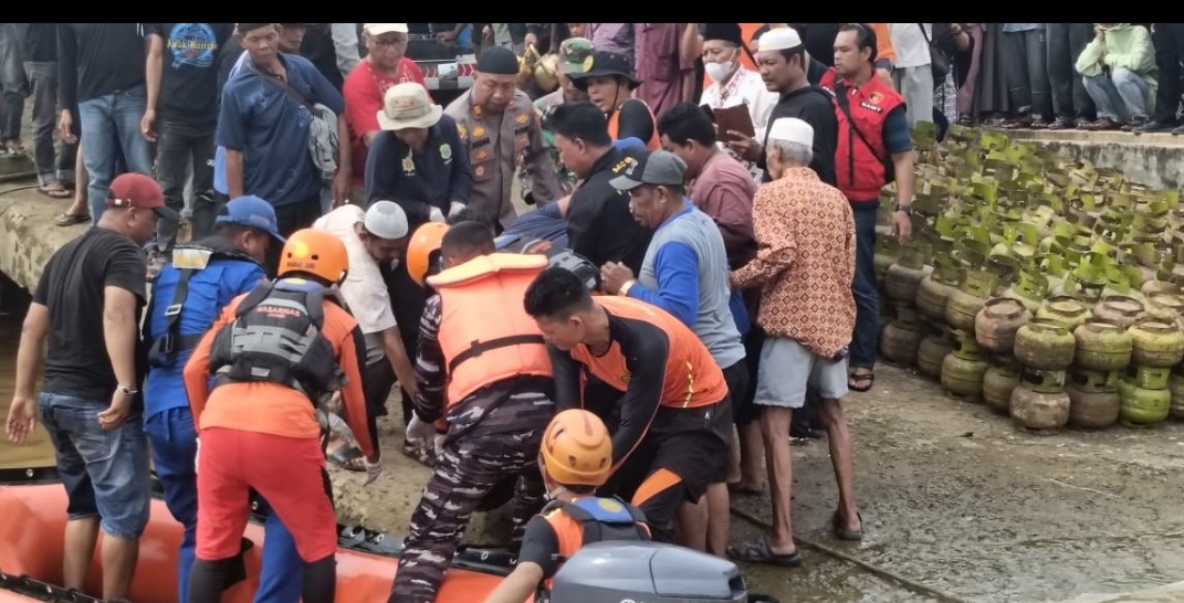 Binpotmar (Pembinaan Potensi Maritim) Nipah Panjang Lanal Palembang bersama Tim SAR gabungan yang terdiri dari unsur Pos Polair Polda Jambi, Basarnas dan Nelayan serta Masyarakat setempat kembali melaksanakan pencarian hari kedua korban Kecelakaan Air (Laka Air) di perairan Sungai Batang Hari Kecamatan Nipah Panjang, Kabupaten Tanjung Jabung Timur Provinsi Jambi, Rabu (1/01/2025).