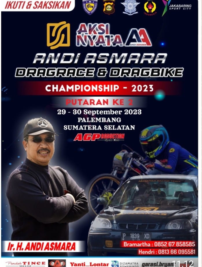 Andi Asmara Drag Race and Drag Bike Championship 2023 putaran kedua kembali digelar di Sirkuit Non Permanen Jakabaring Sport City, Kota Palembang pada 29-30 September 2023.