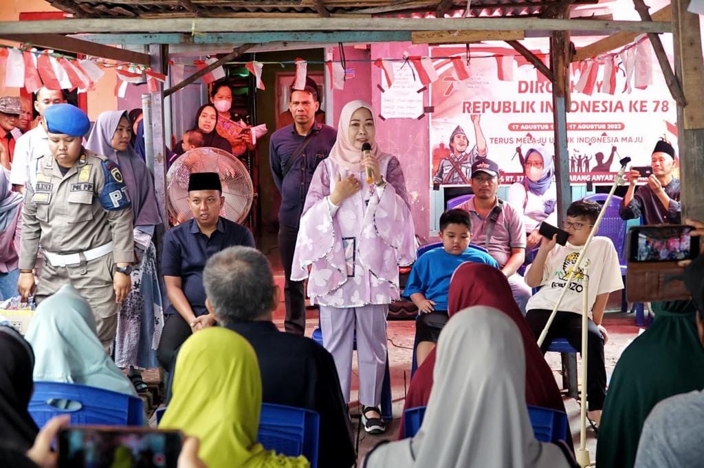 Ketua TP PKK Sumsel Hj Febrita Lustia HD salurkan 200 paket sembako untuk para korban kebakaran yang bermukim di Jalan P.S Ing Kanayan Lorong Sepakat RT 37/ 04 Kelurahan Karanganyar Kecamatan Gandus Palembang, Sabtu (19/8).