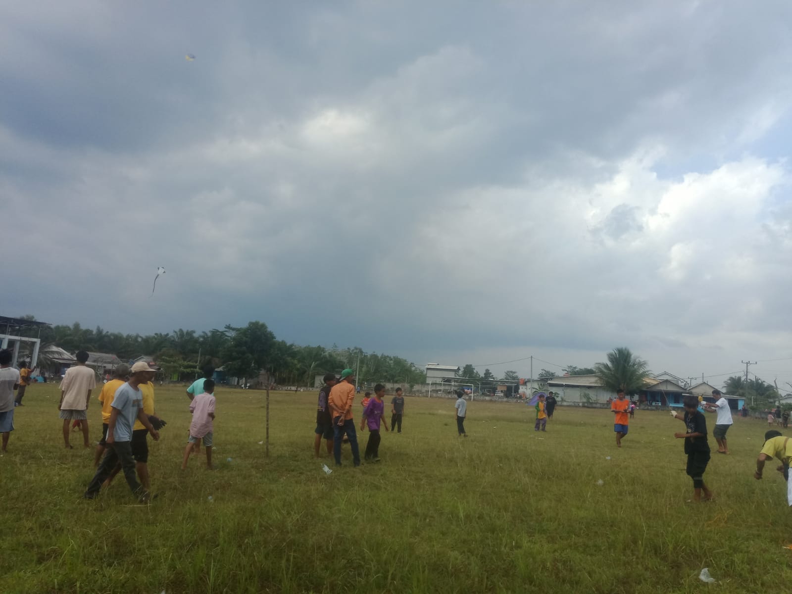 Acara festival perlombaan layang-layang hari pertama ini sangat berjalan dengan lancar sekali terlihat tadi walaupun hujan gerimis warga sangat antusias mengikuti perlombaan hingga selesai tak menyorotkan semangat sama sekali juga bertepuk tangan gembira saat layang-layang sudah di naikkan menghiasi langit.