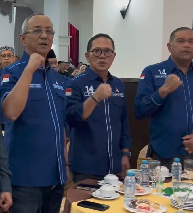 Wakil Ketua DPRD Kabupaten Penukal Abab Lematang Ilir (PALI) dari Partai Demokrat, Firdaus Hasbullah, SH, MH menghadiri kegiatan konsolidasi sekaligus buka puasa bersama yang digelar DPD Partai Demokrat Sumatera Selatan di Hotel Swarna Dwipa Palembang, Senin (9/3/2026).