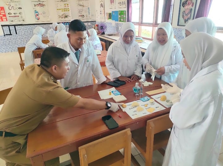 Robi Pibra S.Pd dalam kesempatan itu mengatakan bahwa tujuan dari kegiatan praktikum ini yaitu untuk menguji Kandungan Karbohidrat, Protein, Lemak dan Glukosa dalam bahan makanan.