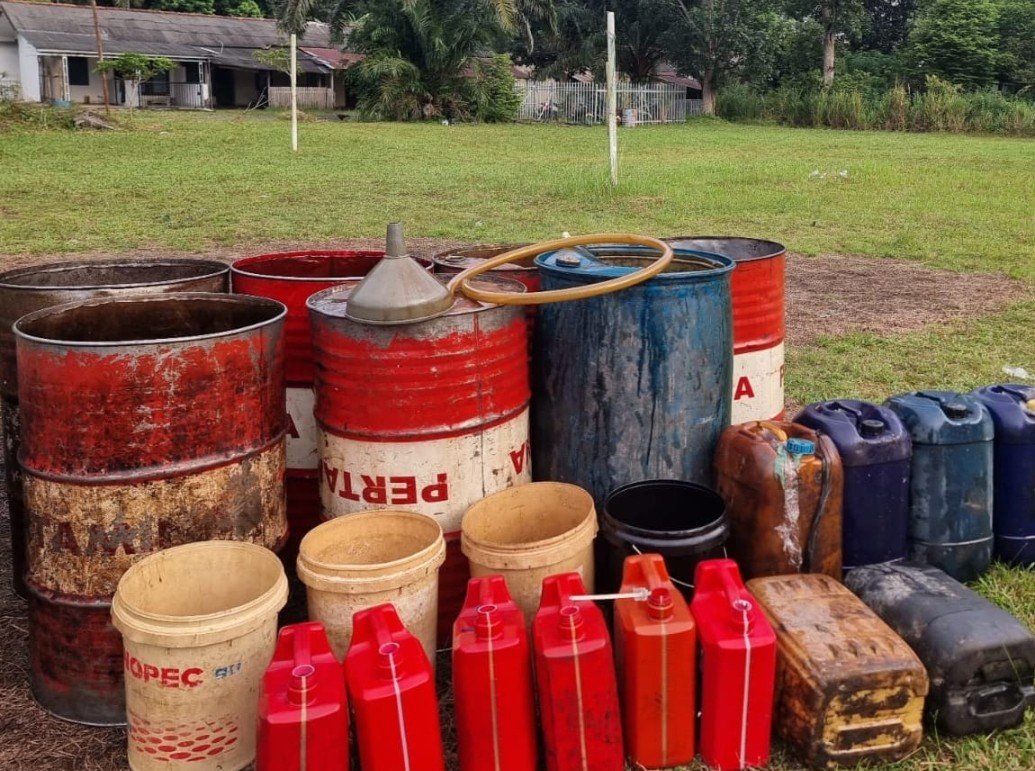 Selain itu, ditemukan juga sejumlah drum dan jerigen kosong, serta peralatan lain yang diduga digunakan untuk kegiatan ilegal tersebut.