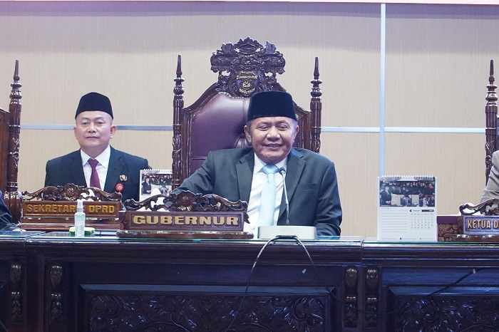 Gubernur Sumatera Selatan (Sumsel) H Herman Deru didampingi Wakil Gubernur (Wagub) H Cik Ujang menyampaikan Laporan Keterangan Pertanggungjawaban (LKPJ) Tahun Anggaran 2024 pada Sidang Paripurna XI Dewan Perwakilan Rakyat Daerah (DPRD) Provinsi Sumsel bertempat Ruang Sidang Paripurna DPRD Sumsel, Senin (23/3/2025) siang,