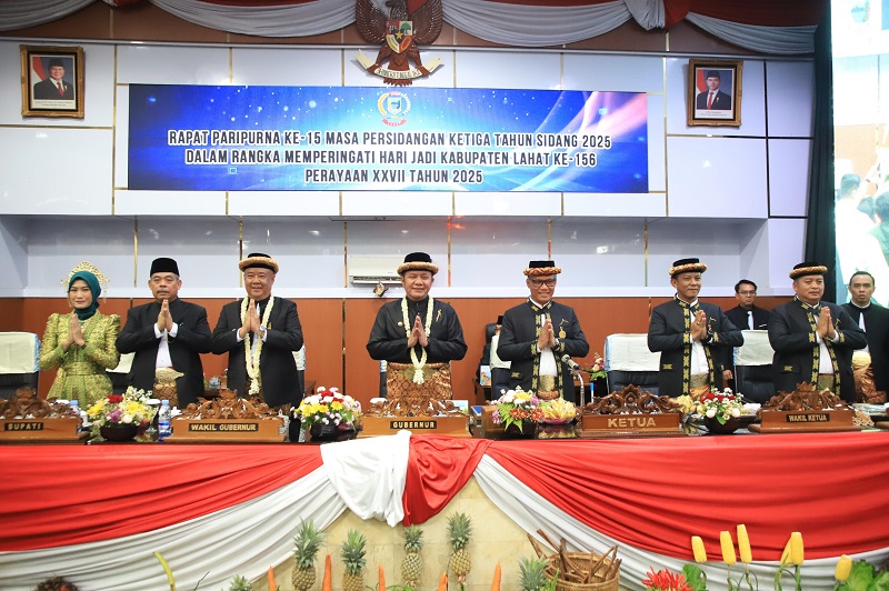 Gubernur Sumatera Selatan (HDCU) H. Herman Deru bersama Wakil Gubernur Sumsel H. Cik Ujang (HDCU) kompak menghadiri Rapat Paripurna ke-15 DPRD Kabupaten Lahat dalam rangka peringatan Hari Jadi ke-156 Kabupaten Lahat, yang digelar di Gedung DPRD Lahat, Selasa (20/5/2025).