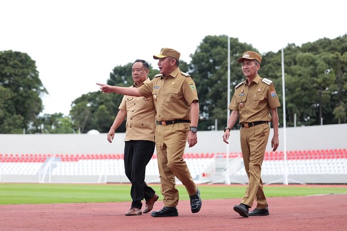 Gubernur Sumatera Selatan (Sumsel) H Herman Deru didampingi Wakil Gubernur (Wagub) H Cik Ujang dan Walikota Palembang Ratu Deru hadiri secara virtual pada peresmian renovasi dan pembangunan 17 stadion di Indonesia oleh Presiden RI Prabowo Subianto, secara virtual bertempat di Stadion Bumi Sriwijaya Palembang, Senin (17/03/25) sore.