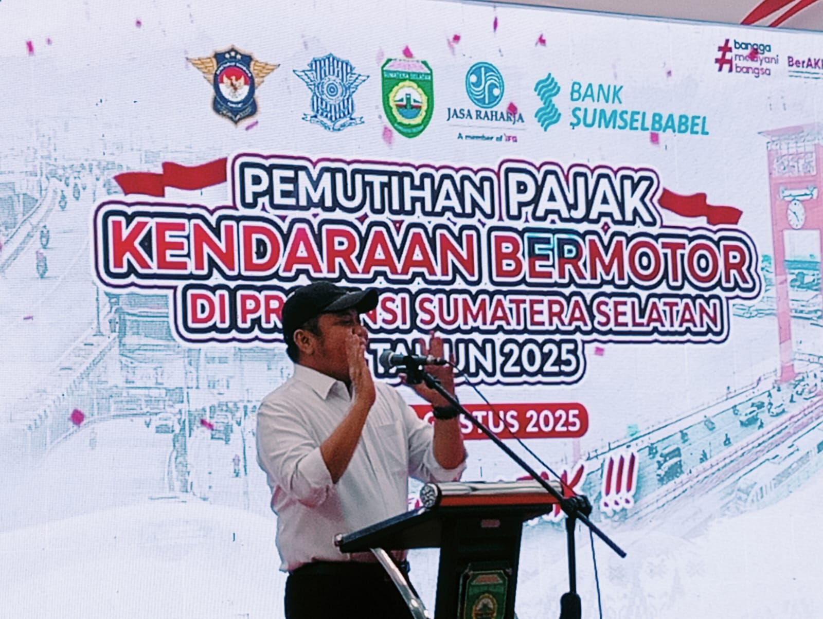 Pemerintah Provinsi (Pemprov) Sumatera Selatan (Sumsel) dalam hal ini Gubernur Sumsel Dr H Herman Deru, S.H., M.M bersama dengan Wakil Gubernur (Wagub) Sumsel H Cik Ujang menghadiri serta melaunching kegiatan Pemutihan Pajak Kendaraan Bermotor di Provinsi Sumsel yang diselenggarakan oleh Badan Pendapatan Daerah (Bapenda) Provinsi Sumsel bertempat di atrium Palembang Trade Center (PTC) Mall Palembang, Sabtu (16/8/2025).