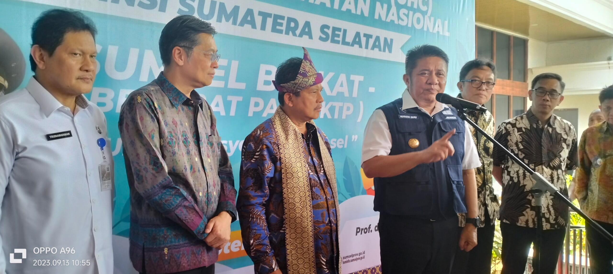 Launching Universal Health Coverage (UHC) Program Jaminan Kesehatan Nasional Sumsel Berkat (Berobat Pakai KTP) untuk masyarakat Sumsel dilaksanakan di Griya Agung, Rabu (13/9/2023).