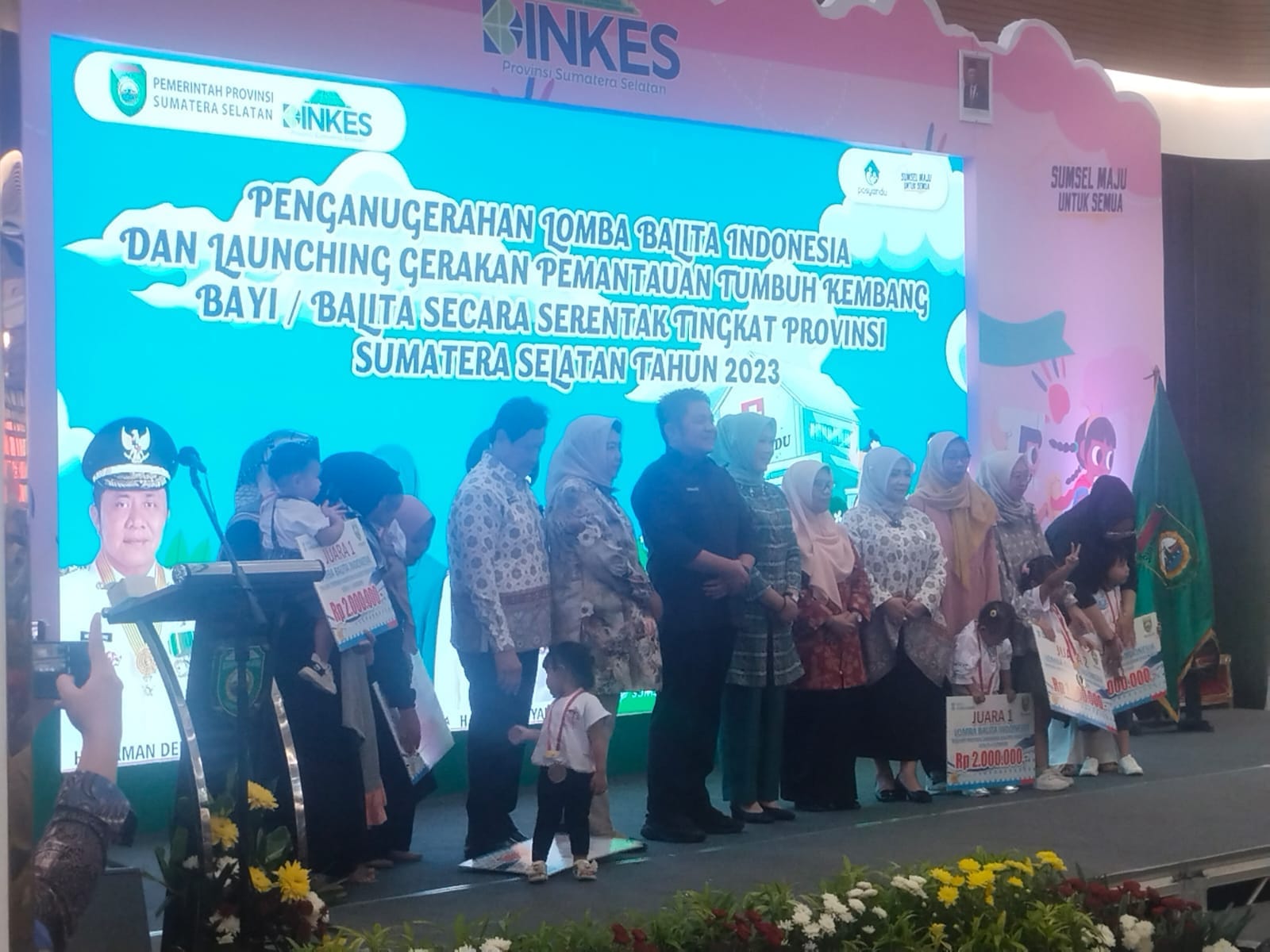 Pemerintah provinsi (pemprov) Sumatera Selatan (Sumsel) dalam hal ini langsung dihadiri oleh Gubernur Sumsel H Herman Deru dengan didamping ketua TP PKK Sumsel Hj Febrita Herman Deru menghadiri acara penganugerahan lomba balita Indonesia dan launching gerakan pemantauan tumbuh kembang bayi/balita secara serentak tingkat provinsi Sumsel tahun 2023 yang dipusatkan di atrium Palembang Indah Mall (PIM), Kamis (13/7/2023).