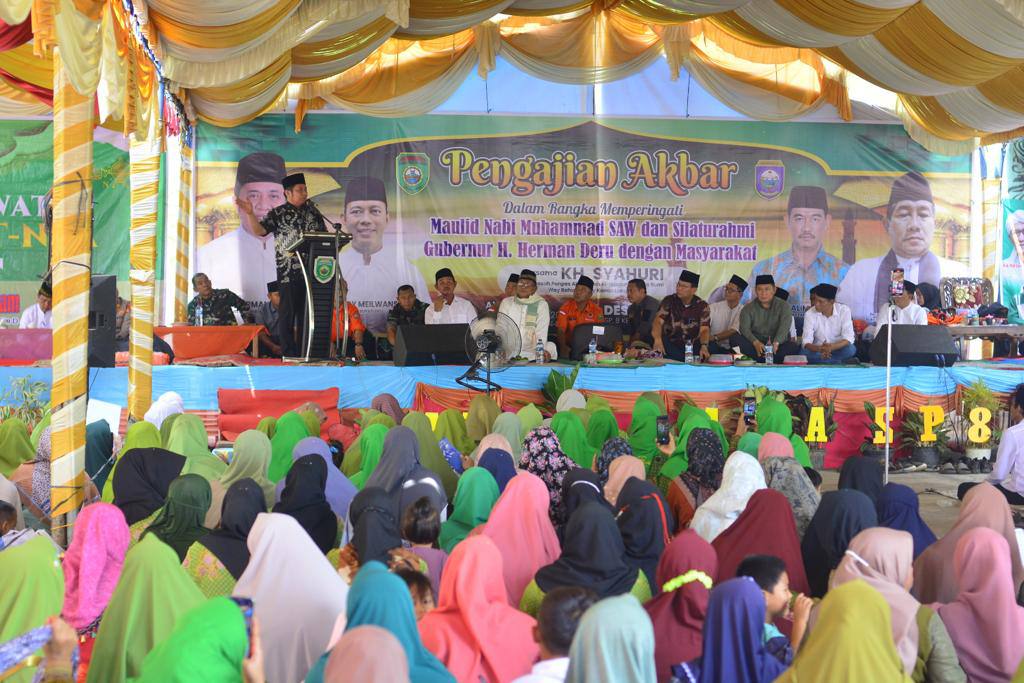 Gubernur Sumsel H Herman Deru menghadiri pengajian akbar memperingati Maulid Nabi Muhammad SAW di yang digelar di lapangan Sepak Bola Desa Panji Jaya Sp 8 Kecamatan Peninjauan Kabupaten Ogan Komering Ulu (OKU), Minggu (24/9).