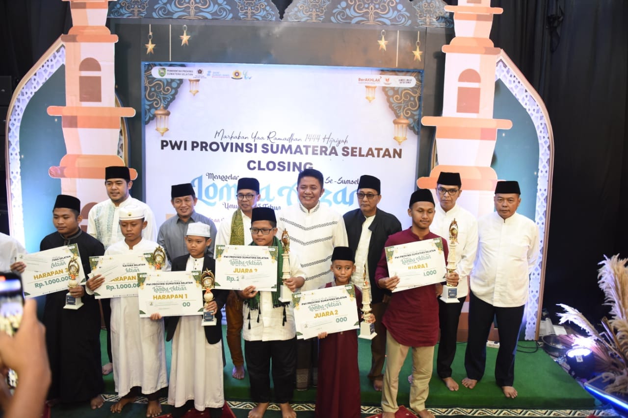 Pada kesempatan ini Gubernur Herman Deru menyerahkan hadiah bagi para pemanang lomba adzan yang digelar PWI Sumsel memperebutkan Piala Gubernur.