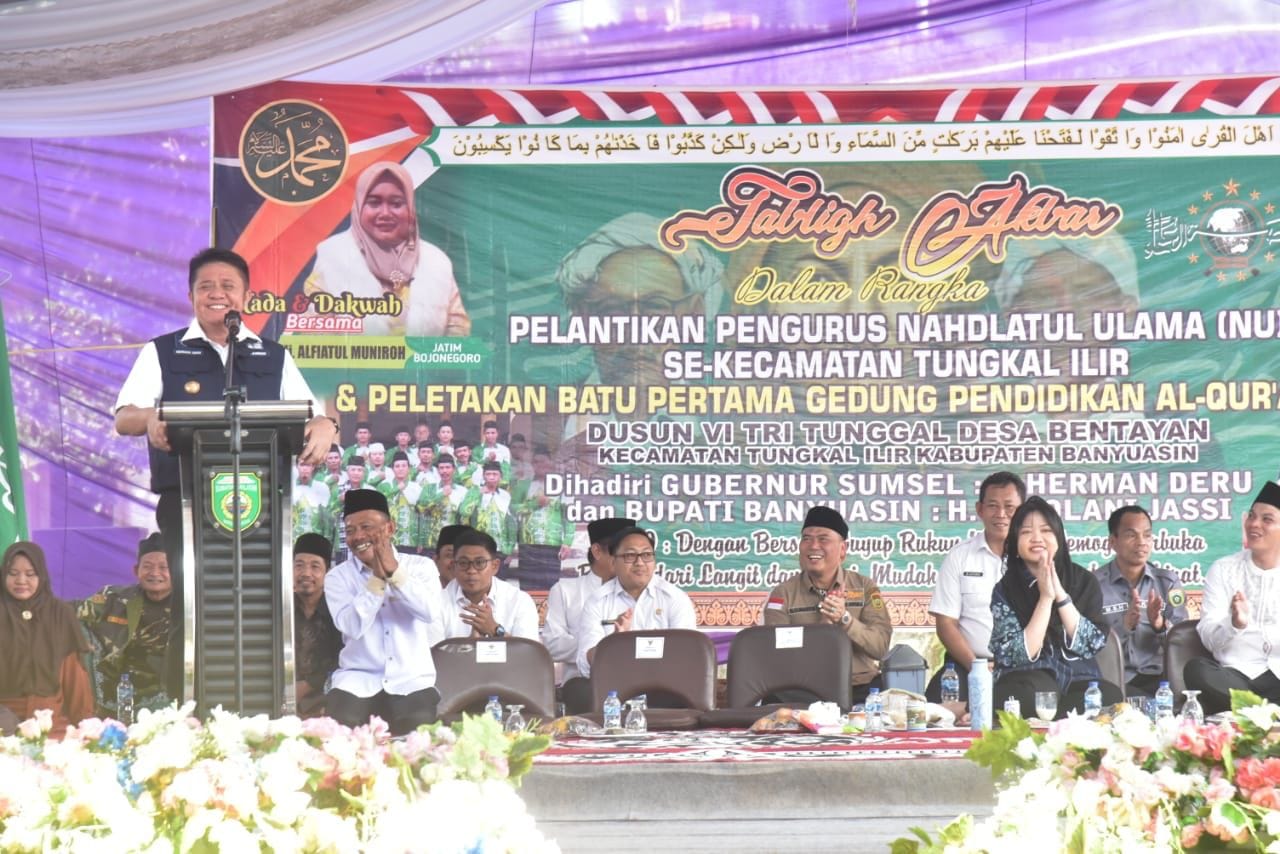 Gubernur Sumsel H Herman Deru menghadiri Tabligh Akbar dalam rangka Pelantikan Pengurus Nahdatul Ulama (NU) Sekecamatan Tungkal Ilir