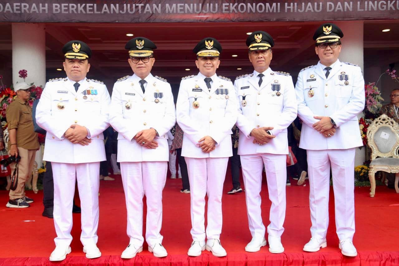 Penjabat (Pj) Gubernur Sumatera Selatan (Sumsel) Agus Fatoni menghadiri langsung Puncak peringatan Hari Otonomi Daerah XXVIII tahun 2024 Tingkat Nasional yang mengusung tema ‘Otonomi Daerah Berkelanjutan Menuju Ekonomi Hijau dan Lingkungan yang Sehat’. Kegiatan ini berlangsung di Balai Kota Surabaya, Jawa Timur, Kamis (25/4/2024).