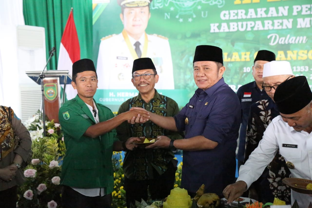 Masih dalam rangkaian kunjungan kerja (Kunker)nya di Kabupaten Musi Banyuasin, Rabu (8/3) Gubernur Herman Deru yang juga sebagai Mustasyar Pengurusan Besar Nahdlatul Ulama (PBNU) menghadiri Apel Akbar Gerakan Pemuda (GP) Ansor Kabupaten Musi Banyuasin yang dipusatkan di Desa Mulyorejo, Kecamatan Sungai Lilin.