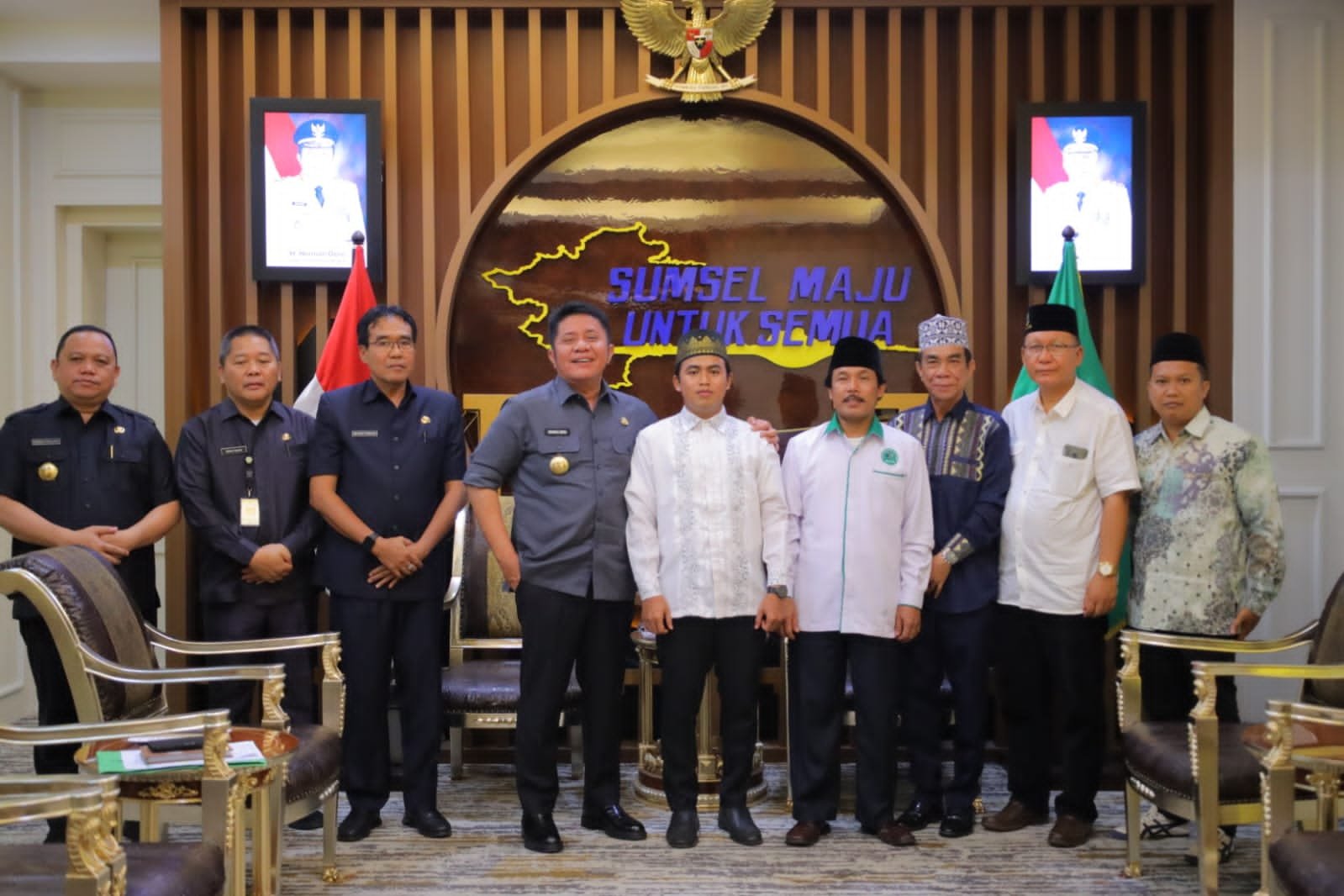 PALEMBANG | Sebelum diberangkatkan mengikuti MTQ Internasional Qatar 2023 pada tanggal 17 sampai 24 Februari mendatang, Abu Quhafah salah satu qori asal Sumsel berkesempatan bertemu Gubernur Herman Deru.