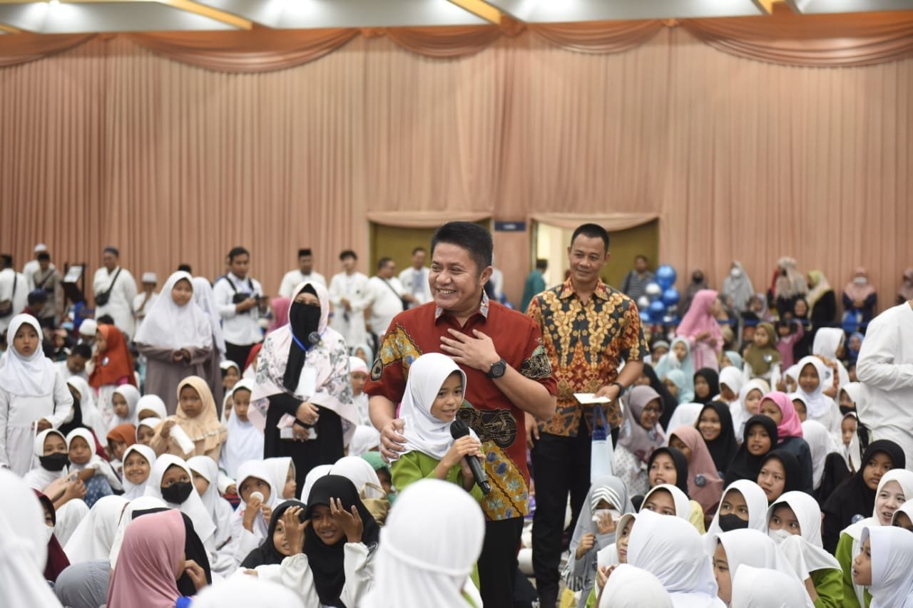 Herman Deru juga mengajak para anak yatim bersenandung lagu religi dan sholawat bersama.