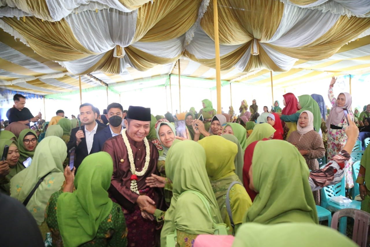 OKU TIMUR | Masih dalam rangkaian HUT Kabupaten Ogan Komering Ulu Timur (OKUT) ke – 19 Tahun, Gubernur Sumsel H. Herman Deru menghadiri pengajian rutin triwulan PAC Muslimat NU sekaligus Peringatan Isra’ Miraj Nabi Muhammad SAW 1445 Hijriah di Desa Pengandonan, Kecamatan Buay Madang Timur, Kami (19/1) siang.