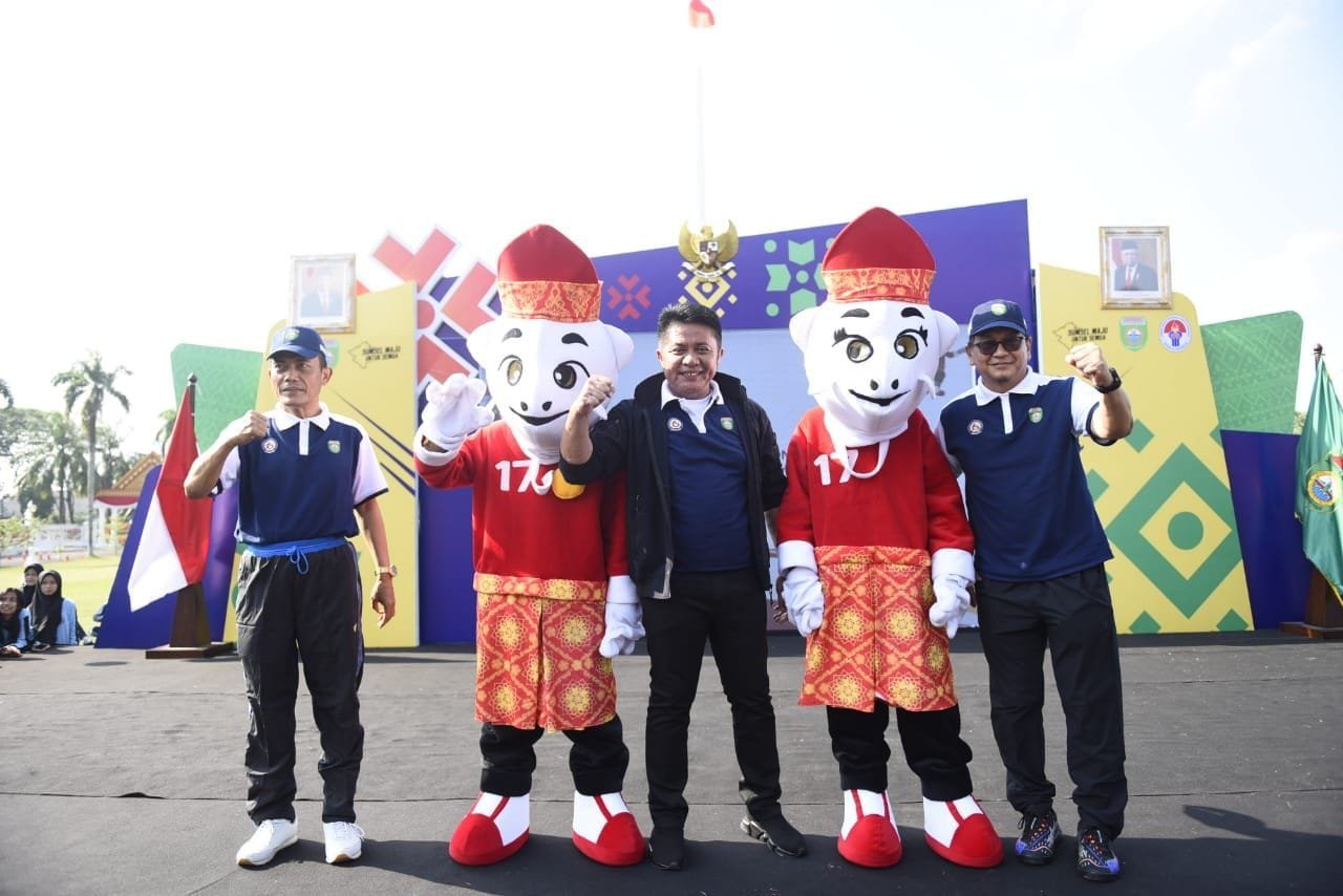 Gubernur Sumsel H. Herman Deru resmi melaunching logo dan maskot Pekan Olahraga Pelajar Nasional (POPNAS)XVI Tahun 2023, di halaman Griya Agung Palembang, Senin (31/7).