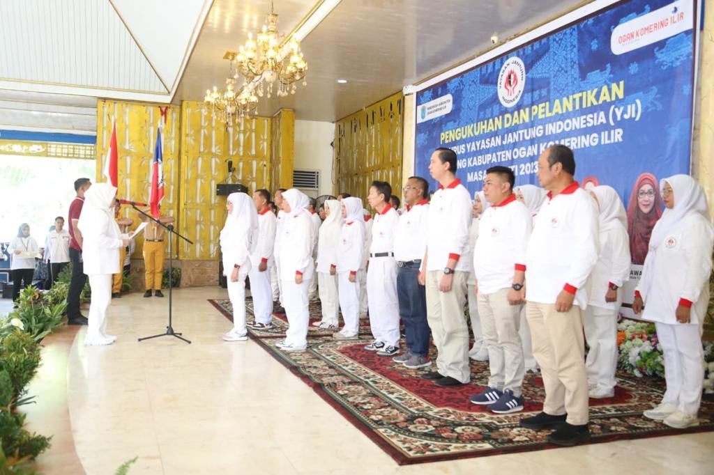 Ketua Yayasan Jantung Indonesia (YJI) Cabang Provinsi Sumsel, Hj Fauziah Mawardi Yahya mengukuhkan Pengurus YJI Cabang Kabupaten Ogan Komering Ilir (OKI) Masa Bakti 2023-2028 bertempat di Pendopo Bende Seguguk Kabupaten OKi, Selasa (1/8).
