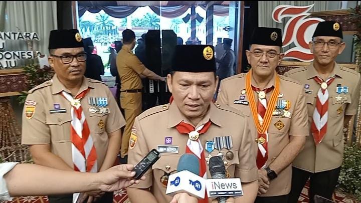 “Jadikan gerakan pramuka sebagai wadah pengembangan diri bagi generasi penerus bangsa, jadikan gerakan pramuka sebagai wadah terus merawat harmoni persatuan negara Republik Indonesia (RI),” ungkapnya.