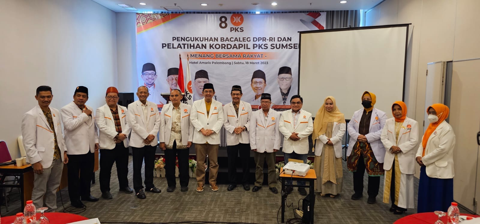 PKS Sumsel Gelar Acara Pengukuhan Bacaleg DPR RI dan Pelatihan Kordapil Menuju Pemenangan Pemilu 2024. Bertempat di Hotel Amaris, Sabtu (18/03/2023)Malam.