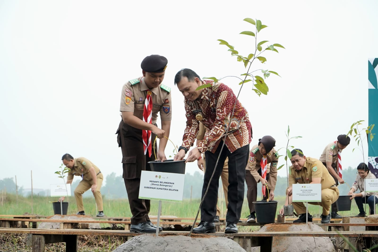Penjabat (Pj) Gubernur Sumatera Selatan (Sumsel) Elen Setiadi, S.H,M.S.E secara resmi melakukan groundbreaking taman rawa pertama di Indonesia yang ditandai dengan penanaman pohon di lokasi pembangunan taman hayati, Jakabaring Sport City (JSC) Palembang, Selasa (2/7/20024).