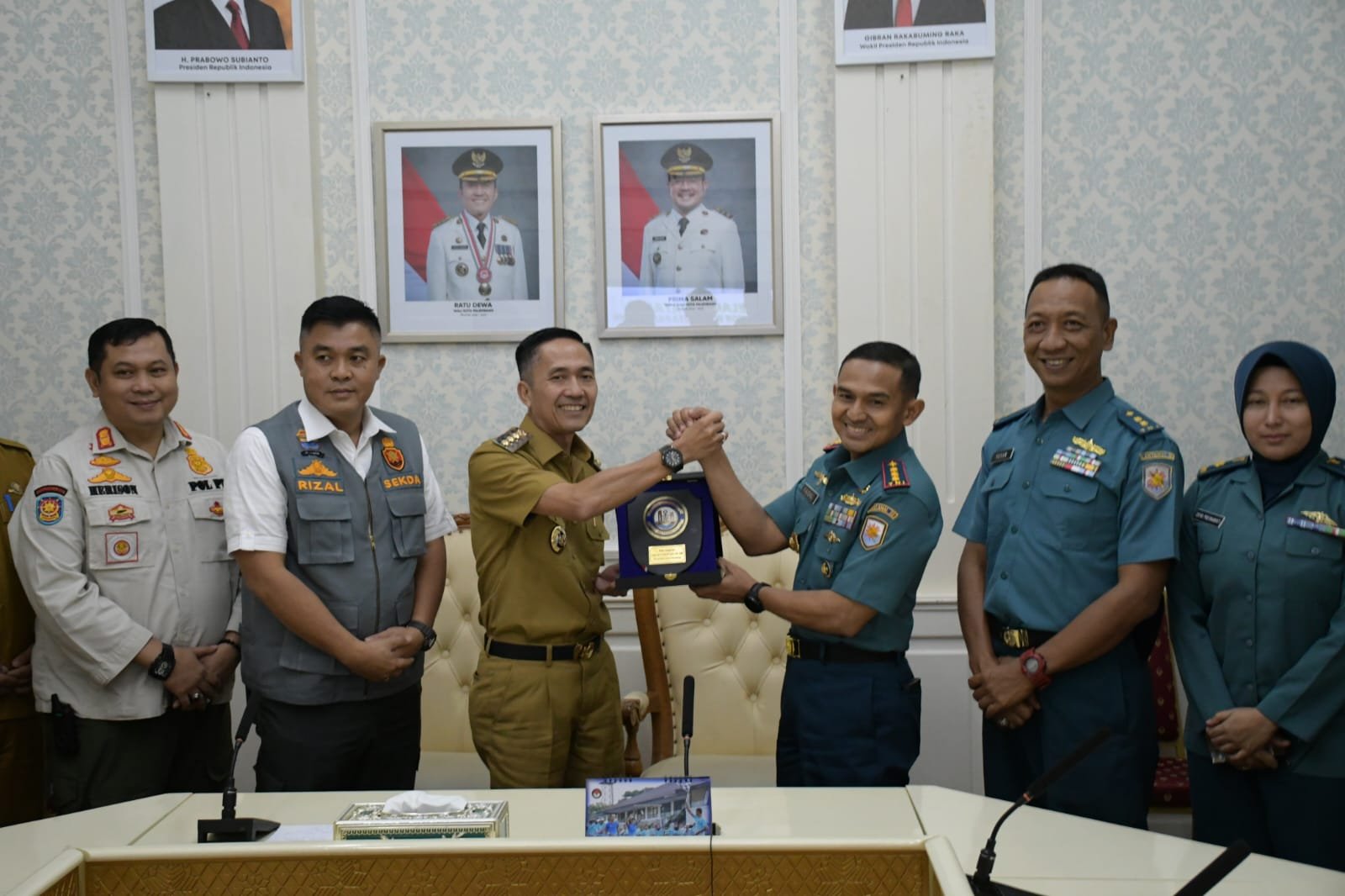 Komandan Pangkalan TNI Angkatan Laut (Danlanal) Palembang, Kolonel Laut (P) Faisal, M.M., M.Tr.Hanla. melaksanakan audiensi dengan Walikota Palembang, Drs. H. Ratu Dewa, M.Si. di kantor Walikota Palembang, Selasa (25/3).