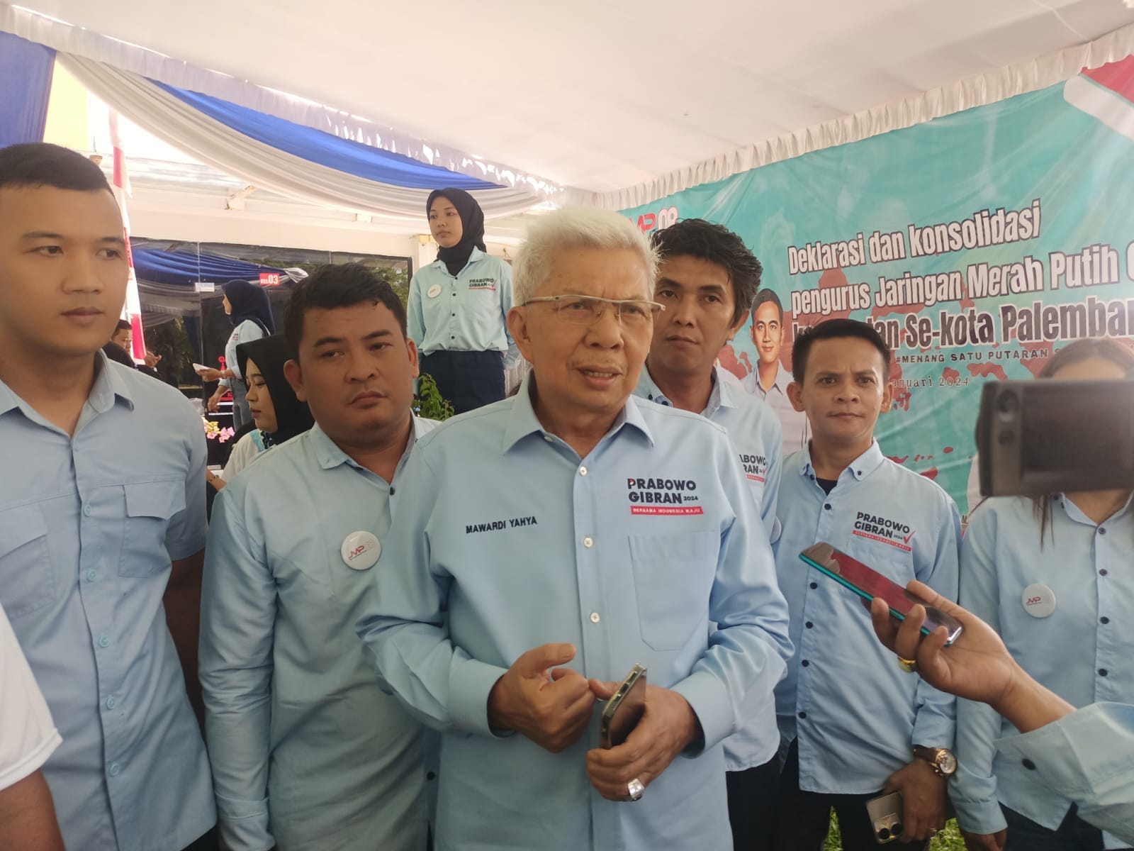 “Target kemenangan Prabowo – Gibran 65 persen di Sumsel, apabila Palembang naek di atas 50 persen insya Allah kemenangan,” kata Mawardi Yahya, usai yel yel Prabowo Gibran Presiden menang satu putaran.