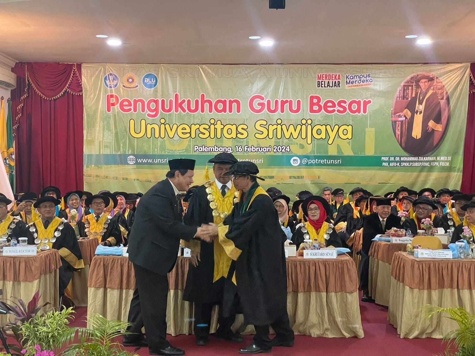 Pemerintah provinsi (Pemprov) Sumatera Selatan (Sumsel) dalam hal in Penjabat Gubernur Sumsel Dr Drs H A Fathoni, M.Si yang diwakili oleh Kepala Dinas Kesehatan (Dinkes) Provinsi Sumsel menghadiri undangan dari Universitas Sriwijaya (UNSR) dalam acara Pengukuhan Guru Besar Bidang Ilmu Kedokteran Fakultas Kedokteran UNSRI, Prof. Dr. dr. Mohammad Zulkarnain, M.MedSc, PKK, AIFO-K, SpKKLP. Subs.FOMC, FISPH, FISCM bertempat di Gedung Serbaguna Pascasarjana Universitas Sriwijaya Bukit Besar Palembang